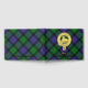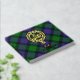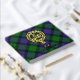 Insignia escudo del clan Blair rodeada por una correa y hebilla sobre el fondo del tartán. texto frontal, espalda y columna vertebral personalizado.