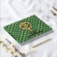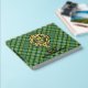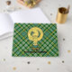 Insignia de escudo del león Clan Currie rodeada por una correa y hebilla sobre el fondo del tartán. texto frontal, espalda y columna vertebral personalizado.