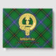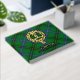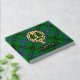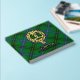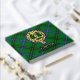 Bandera escudo del clan Henderson rodeada por una correa y hebilla sobre el fondo del tartán. texto frontal, espalda y columna vertebral personalizado.