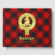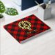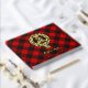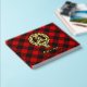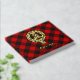 Clan Gregor o insignia escudo MacGregor rodeada por una correa y hebilla sobre el fondo tartán de Rob Roy. texto frontal, espalda y columna vertebral personalizado.