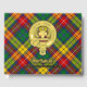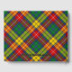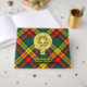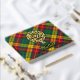 Insignia escudo del clan Buchanan rodeada por una correa y hebilla sobre el fondo del tartán. texto frontal, espalda y columna vertebral personalizado.