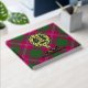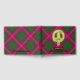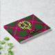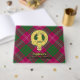 Insignia de escudo del Clan Crawford rodeada por una correa y hebilla sobre el fondo del tartán. texto frontal, espalda y columna vertebral personalizado.
