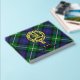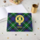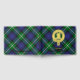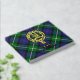 Insignia escudo de Clan Forbes rodeada por una correa y hebilla sobre el fondo del tartán. texto frontal, espalda y columna vertebral personalizado.