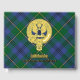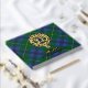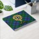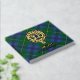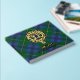 Insignia escudo Clan Johnston rodeada de una correa y hebilla sobre el fondo del tartán. texto frontal, espalda y columna vertebral personalizado.