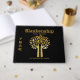 Haga que la familia comparta los recuerdos de su reunión más reciente con un libro de visitas que presenta un diseño de portada y espalda de manos sosteniendo hojas de árbol de oro en un fondo negro. Personaliza todo el texto o elimina cualquier. Muestra el libro anualmente para que los recuerdos puedan ser compartidos año tras año.