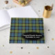 Celebra tu reunión familiar usando este elegante libro de gustos escocés de guisantes campanos azul y verde escocés.