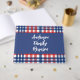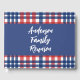 Gigante rojo, blanco y azul con un texto personalizado de reunión familiar.
