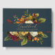 Etéreos ramos de flores con tonos rojos oscuros, naranja oxidado, oro amarillo a cosecha y vegetación exuberante, que le dan a este oscuro diseño botánico un aspecto de sobria y moderna elegancia rústica que impresiona a sus huéspedes. Disponible en diversos colores. Este diseño se muestra aquí sobre un fondo verde azulado oscuro. El texto de "libro de visitas" es ineditable excepto por el diseñador. Diseño compuesto por Holiday Hearts Designs (derechos reservados).