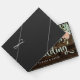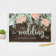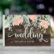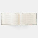 Este elegante libro de oro presenta un estilo rústico de madera y está decorado con suaves melocotones y flores de color verde salado. Hay un punto para sus nombres, y la palabra "boda" aparece en la tipografía de escritura a la moda.