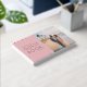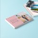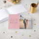 This wedding guest book features a split design with a soft pink background on the left and a serene beach photograph on the right. The elegant script font adds sophistication, while the minimalist layout emphasizes simplicity and romance. Perfect for capturing memories at your special day, this design combines a tranquil coastal vibe with an intimate touch, making it ideal for any beach-themed wedding celebration.