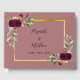 Un moderno y elegante libro de huéspedes decorado con rosas de color agua en burdeos con plumas y vegetación. Con un marco de oro falso. Fondo de color rosa de canela. Plantillas para sus nombres y fecha de boda. Los nombres de la parte delantera están escritos con una escritura de estilo moderno y moderno con letras a mano. Letras de color negro. Añade tu texto en la columna vertebral. Texto negro Atrás: fondo rosa de canela.