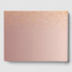 Un libro de invitados para un Baby Shower glamuroso, elegante y moderno, en celebración de una niña. Un fondo de degradado de oro rosa de moda con espolvorines de confeti dorado. El texto: Libro de invitados está escrito con letras de oro falsas. Los nombres y la fecha están escritos con un guión de estilo con letras a mano, texto dorado. Plantilla para el texto en la columna vertebral, texto gris.