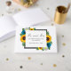 El diseño presenta elegantes girasoles, rosas y margaritas con una paleta de colores dorados amarillo, verde azulado y blanco. El diseño también incluye un marco gris de carbón vegetal. Puede cambiar el color de fondo en la parte delantera y de vuelta al color de su elección o dejar ambos en blanco.