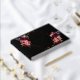 Un elegante fondo negro, Relieve metalizado de oro subió. Decorado con marco geométrico y florales en burdeos y rosa. Personalice y agregue su nombre, edad y fecha. Espina: agrega tu texto.