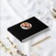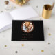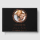 Un fondo negro, Relieve metalizado de oro subió. Decorado con un marco dorado subió. Personalice y agregue su foto, nombres y fecha de boda. Espina: agrega tu texto.