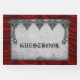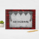 Este libro de bienvenida gótico de bodas presenta un fondo de seda rojo, rico y exuberante, con una capa de pergamino gris de época encima. Una hilera de joyas negras y plateadas se encuentra en la parte superior, con pares de cráneos de plata espeluznantes y ojos rojos turbios colgados en cada esquina. En la parte trasera hay el mismo patrón de papel gris antiguo, con una sola rosa roja y cinta. Encontrará el resto de la suite boda coincidente, incluyendo la invitación, guardar las fechas y más, aquí: https://www.zazzle.com/collections/blood_roses_and_silk_red_gothic_wedding-119200349504887025