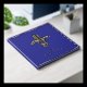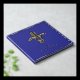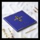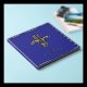 Exterior is shown with a Royal emblem of the Fleur di Lis in gilded real gold foil. Preselected text for your name or title for you to personalize, sample name shown is "Boynton" and a gold foil border on front and back.