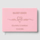 Fondo de color rosa oscuro, Relieve metalizado de oro subió. Personalice y agregue sus nombres y la fecha de boda. Sr. Mrs con corazón.