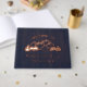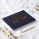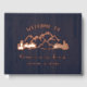 If you own a ranch or cabins or any other properties in or near the mountains, let your guests sign this rustic guestbook with rose gold foil lettering and an illustration of a mountain landscape printed in real rose gold foil against a printed faint wood texture in warm brown stained dark blue. Personalize the guestbook with the name of your rental home, rental cabin, guest cabin or ranch and add your city or town and state. Welcome to is written in an arch above the mountain tops, but all text is editable so you can customize the guestbook to suit your small business. Choose which foil color you want: gold, rose gold, or silver!