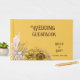 Esquinas florales de Boho de acuarela y motivos de girasol de tinta sobre fondo amarillo mostaza. Los detalles de girasoles rústicos y pampas se combinan con un original tipo de letra ornamental. Un aspecto muy bohemio de la oreja paleta dorada amarilla. Marfil, marrón, amarillo y mostaza.