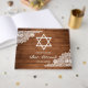 Libro de invitados Bar o Bat Mitzvah. Estilo rústico con un fondo de madera y decoración de encaje blanco. Hay más artículos disponibles en este estilo en nuestra tienda. Puede editar el diseño más adelante, cambiar colores, fuentes y añadir texto extra haciendo clic en el enlace "personalizar más adelante".
