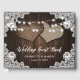 Elegante libro de invitados rústico de bodas de campo con dos corazones de burrega, encaje floral blanco y luces de cuerda sobre un fondo rústico de madera. Ideal para su rústico campo, granja, patio trasero o fiesta de bodas. Elementos coincidentes disponibles.