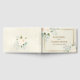 Este hermoso libro de visitas servirá como un recuerdo especial de su día de bodas. Presenta un diseño de moda boho pintado a mano con rosas acuáticos de color melocotón blanco o pálido y vegetación en el jardín con hojas de eucalipto. Hay un Relieve metalizado de imitación dorada que rodea los nombres de la pareja y la fecha boda.