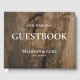 El diseño de este libro de bodas presenta una plancha de madera maciza rústica y elegante, tipografía blanca personalizado para el título del libro de visitas, nombres de recién casados y fecha boda. El diseño es sencillo, minimalista, pero elegante y se adaptaría perfectamente a su rústico boda occidental o evento especial. Para el fondo de este diseño, gracias a Patrick Fore de Unsplash .