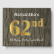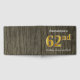 El diseño de este libro de huéspedes incluye el número ordinal "62" con un aspecto de imitación de oro. También cuenta con un nombre personalizado y un ambiente rústico de madera falsa. Se podría usar en un fiesta para alguien que celebre su 62° cumpleaños. [~Z0000053]