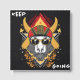Un gráfico atrevido y motivacional que presenta a un ariete fresco con casco rojo y gafas de sol, con las palabras "SIGAN VANIENDO" en la parte superior e inferior. El rostro del ariete está estilizado con un trabajo de línea intrincado, rodeado de formas geométricas y patrones en tonos rojos, dorados y negros. El diseño exude fuerza, resiliencia y determinación, y los cuernos del ariete simbolizan perseverancia. El fondo presenta un estallido dinámico y patrones de capas, añadiendo profundidad y energía a la composición general.