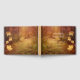 Este libro de recuerdos rústico de otoño presenta la imagen de un tranquilo sendero de senderismo bordeado de árboles resplandeciente en los impresionantes colores otoñales en tonos dorados y rojos - gráficos semitransparentes en forma de hojas de arce en el borde derecho - de katz_d_zynes