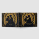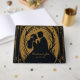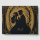 La elegante silueta de una novia y un novio rodeados de flores y adornos ornamentales. El diseño es una lujosa combinación de oro y negro, que desprende elegancia y refinamiento. Los detalles son muy detallados y le confieren un toque romántico y elegante a la invitación.