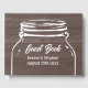 Libro de invitados de la silueta de tarro de carmín, boda de madera marrón rústica. Forma parte de un elegante conjunto temático con papelería y decoración. Dejen que sus invitados escriban algunas palabras. Perfecto para el jardín rural y los matrimonios de graneros. Personaliza con el nombre de la novia y el novio más la fecha de casarte. Estilosa tipografía de escritura angustiada. Hermosa obra de arte para la fiesta de bodas de moda.