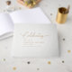 Simpel "Celebración de la vida" textura de papel blanco-gris (imagen digital) Libro de invitados. Elegante y encantador tipo de letra para escritura a mano.
