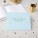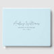 "Para siempre en nuestros corazones" Simpel, mínimo, color azul claro del libro de invitados. Elegante y encantador tipo de letra para escritura a mano.