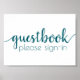Simple horizontal "Guestbook: Por favor, Rótulo en" ducha, fiesta, o carteles de recepción con un divertido y casual guión con letras a mano. El diseño clásico incluye un moderno superpuesto de tipografía con letras a mano. El bonito tipo de letra con un color de fondo de personalizable facilita la adaptación a cualquier tema. Para otros colores o productos a juego, por favor visite la tienda JustFharryn Zazzle, o contacte con el diseñador, c/o fharryn@yahoo.com Todos los derechos reservados. #zazzlemade