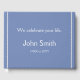 Este sobrio libro de visitas para el funeral/recuerdo conmemorativo muestra el mensaje "Celebramos tu vida", y el nombre personalizado y las fechas de nacimiento/muerte de la persona que ha fallecido. Podría ser usado para registrar las condolencias por los parientes y amigos de alguien que ha fallecido recientemente.