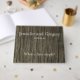 Este boda rústico o libro de visitas incluye el mensaje "¡Qué pareja tan buena!", junto con los nombres personalizados de la pareja casada, y la fecha boda. También presenta un fondo con un patrón rústico similar a la madera falsa. Se podría usar para registrar buenos deseos para la pareja recién casada.