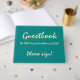 Este libro de visitas básico incluye los mensajes "Guestbook" y "Please sign!", junto con una fecha de personalizado. El texto es de color beige y el fondo es verde azulado. Un libro de visitas genérico de personalizable como este puede ser usado en un evento como una reunión familiar, un boda, un funeral, una ducha de bebé, una fiesta de cumpleaños, un fiesta de retiro o cualquier otro evento.