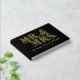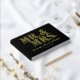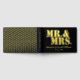 Este elegante libro de visitas nupciales muestra un impresionante diseño con elegantes acentos de Relieve metalizado dorado, destacando los títulos "Mr. and Mrs." en una elegante tipografía audaz. El diseño se ve reforzado por una ampersand muy bien elaborada, acompañada por un motivo circular en el que se aprecia un corazón de amor dorado en lugar de una época tradicional. Este libro de huéspedes, con un llamativo fondo negro, no sólo sirve como un keepsake funcional, sino también como una impresionante pieza decorativa que refleja el refinado gusto y el amor de la pareja.