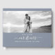 Este sencillo y moderno libro de personalizados caligráficos es perfecto para un boda hermoso y moda. El sofisticado diseño en blanco y negro muestra sus nombres y fecha de boda en tipografía minimalista junto con un romántico y caprichoso guión escrito a mano que dice "Sr. y Sra." bajo su foto favorita en blanco y negro. En la parte de atrás hay espacio para otra foto favorita. Esta es la versión azul polvorienta.