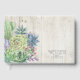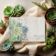 Las fuentes únicas, los coloridos suculentos acuarelas y los rústicos fondos de madera de madera son los puntos fuertes de estos productos bodas de mezcla y combinación. Este hermoso libro de bodas tiene bordes de esquina en un fondo de madera clara y templada. Se proporciona una plantilla para introducir las iniciales y la fecha de boda del novio y de la novia que se centran en una pequeña etiqueta en la parte posterior. Busque ID515 para ver todos los productos coincidentes de este conjunto.