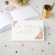 Nuestra colección de bodas 'Sunset Bloom' captura los tonos cálidos y románticos de un jardín iluminado por el sol. Delicados rosas de coral en tonos suaves naranjas se mezclan con gusto con el sutil toque de verde helecho, todo ello en un marco limpio y elegante. Cada una de las piezas de esta colección tiene un encanto suave, perfecto para las parejas que aprecian la belleza subestimada y el tierno abrazo del amor. De la invitación a las notas de agradecimiento, "Sunset Bloom" promete una suite cohesionada y encantadora que refleja el romanticismo de su día especial. Descubra varios formatos de diseño dentro de esta colección, cada uno cuidadosamente diseñado para llevar la dulce esencia de su historia de amor.