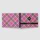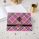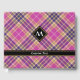 Tartán rosa, amarillo dorado y azul. Patrón sin foco. texto personalizado y monograma.