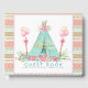 Libros de invitados para la fiesta de cumpleaños tribal con tepee y globos verde azulados de color azul y rosa sobre una menta, rosa y dorado de diseño nativo americano indio. Este lindo libro de invitados de la fiesta de cumpleaños tipee se personaliza fácilmente para tu evento simplemente agregando tus detalles en el estilo de letra de tu elección. Este lindo diseño tribal de libros de invitados funciona bien para un libro de cumpleaños y de bebés ducha.