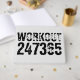Texto desgastado y raspado Workout 247365 en color negro con fondo blanco. Perfecto para todo aquel que levante, haga ejercicio físico, entrenando, construyendo el cuerpo e ir al gimnasio.