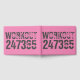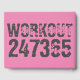 Texto desgastado y raspado Workout 247365 en color gris con fondo rosado. Perfecto para todo aquel que levante, haga ejercicio físico, entrenando, construyendo el cuerpo e ir al gimnasio.
