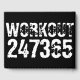Texto desgastado y raspado Workout 247365 en color blanco con fondo negro. Perfecto para todo aquel que levante, haga ejercicio físico, entrenando, construyendo el cuerpo e ir al gimnasio.