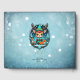 Un elfo de reno al estilo personalizado adorable con pelo rojo y ojos grandes. Lleva un traje de elfo verde y rojo con un gorra puntiagudo y está rodeada por dos renos más pequeños. El fondo es una escena invernal con nieve, pinos y un cielo estrellado por la noche. Este bonito diseño le hará sentir el ánimo durante la temporada de Navidades