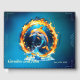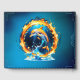 Una fascinante interacción de fuego y agua. Un delfín salta elegantemente en medio de este impresionante contraste de fuego y agua. Su piel plateada brilla a la luz de las llamas y el agua.